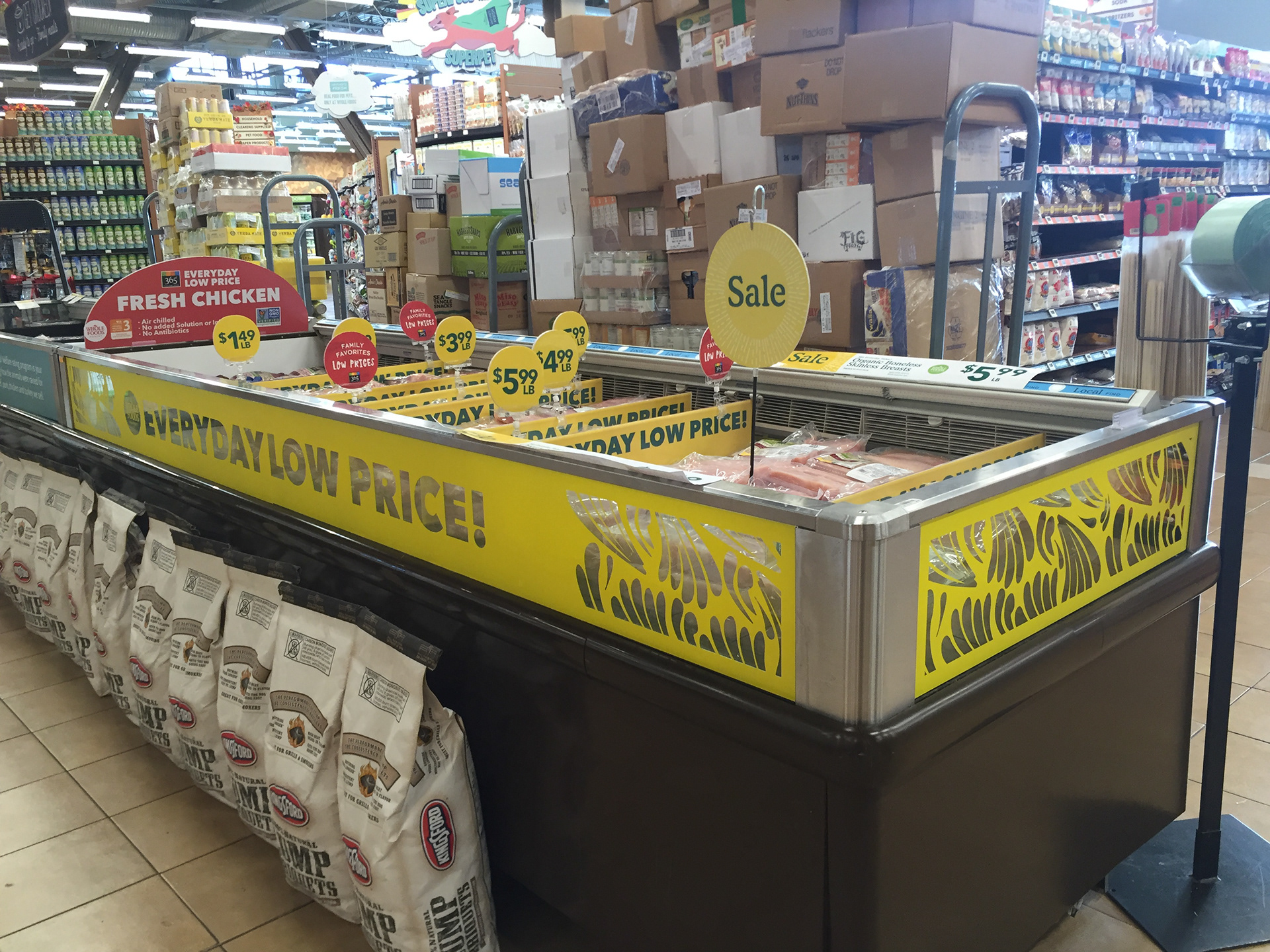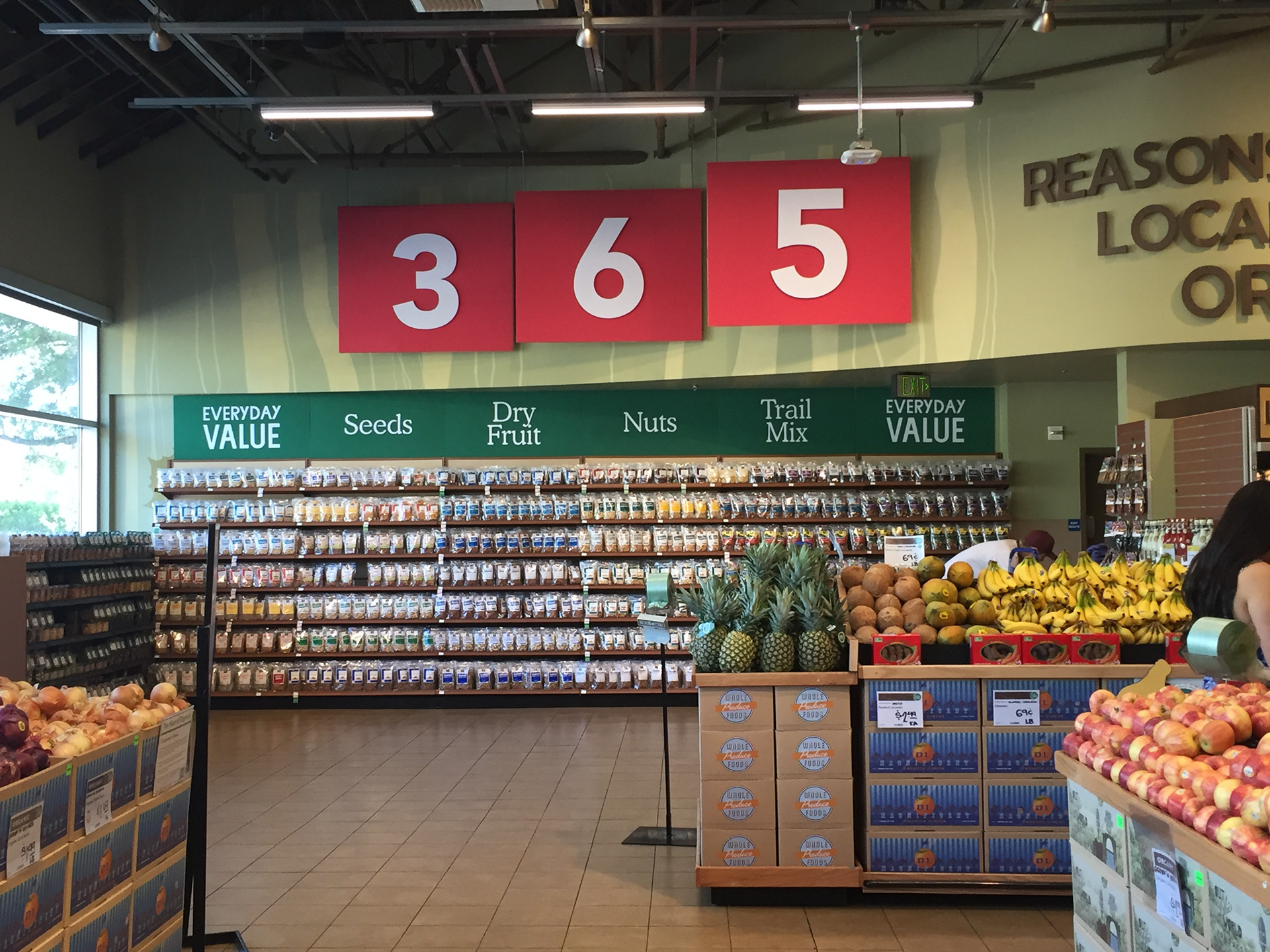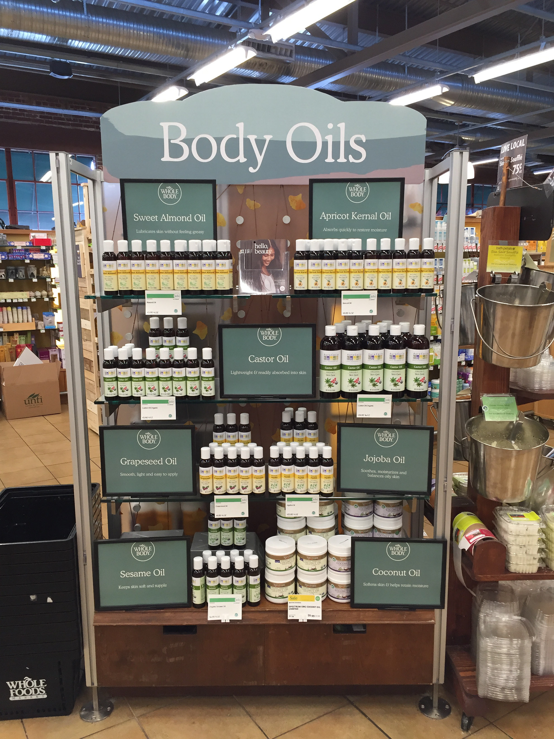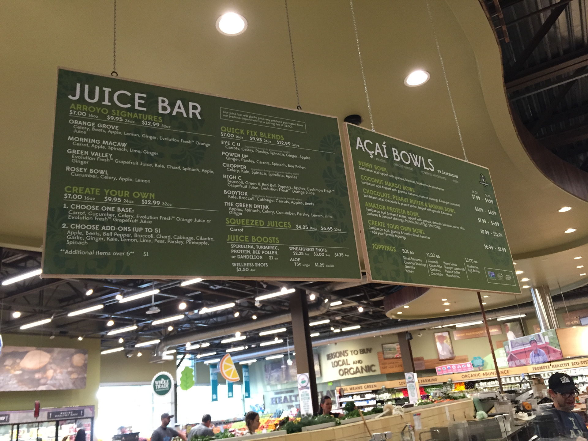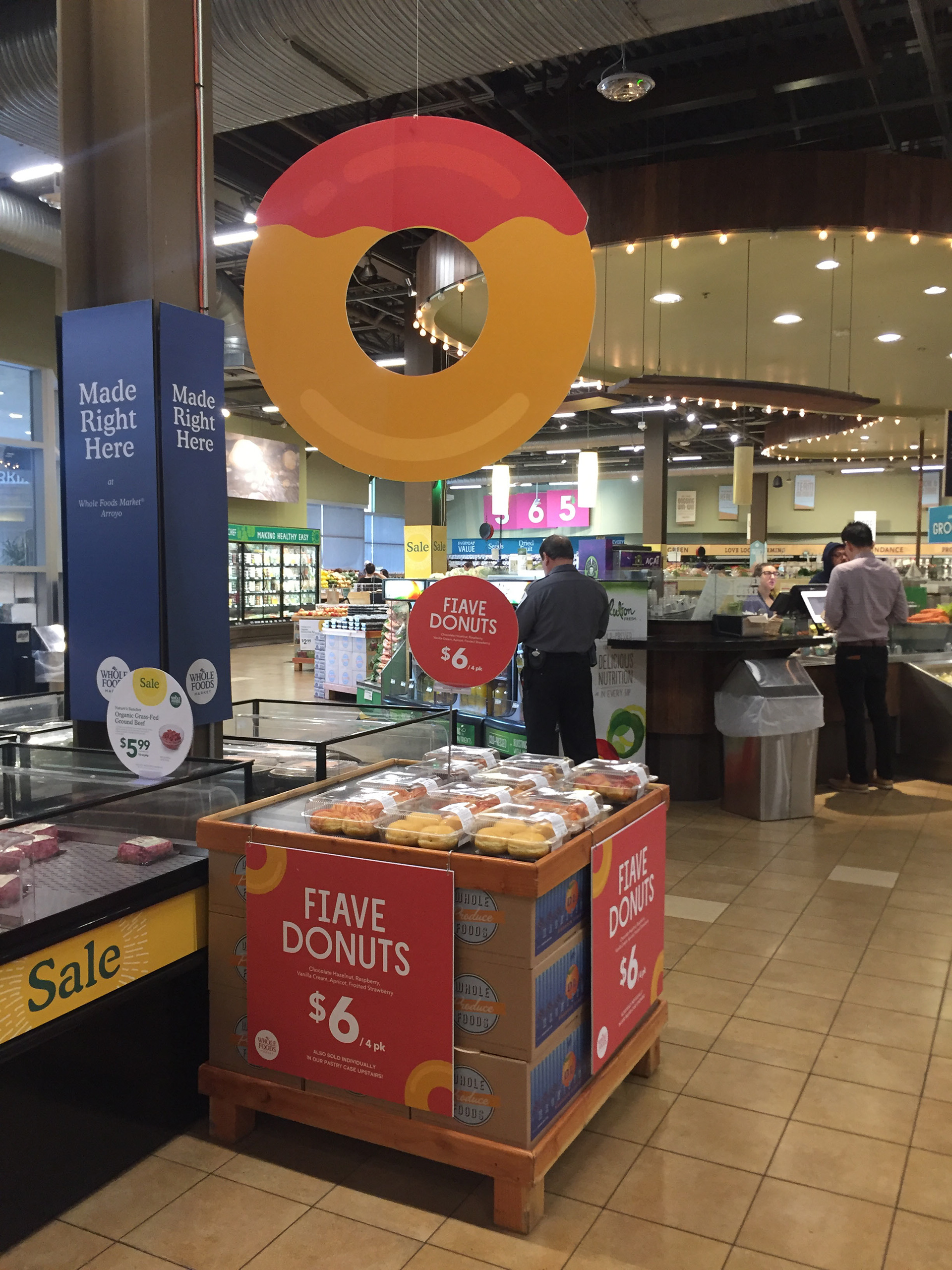 In-store signage and visual merchandising for Whole Foods Market Arroyo.