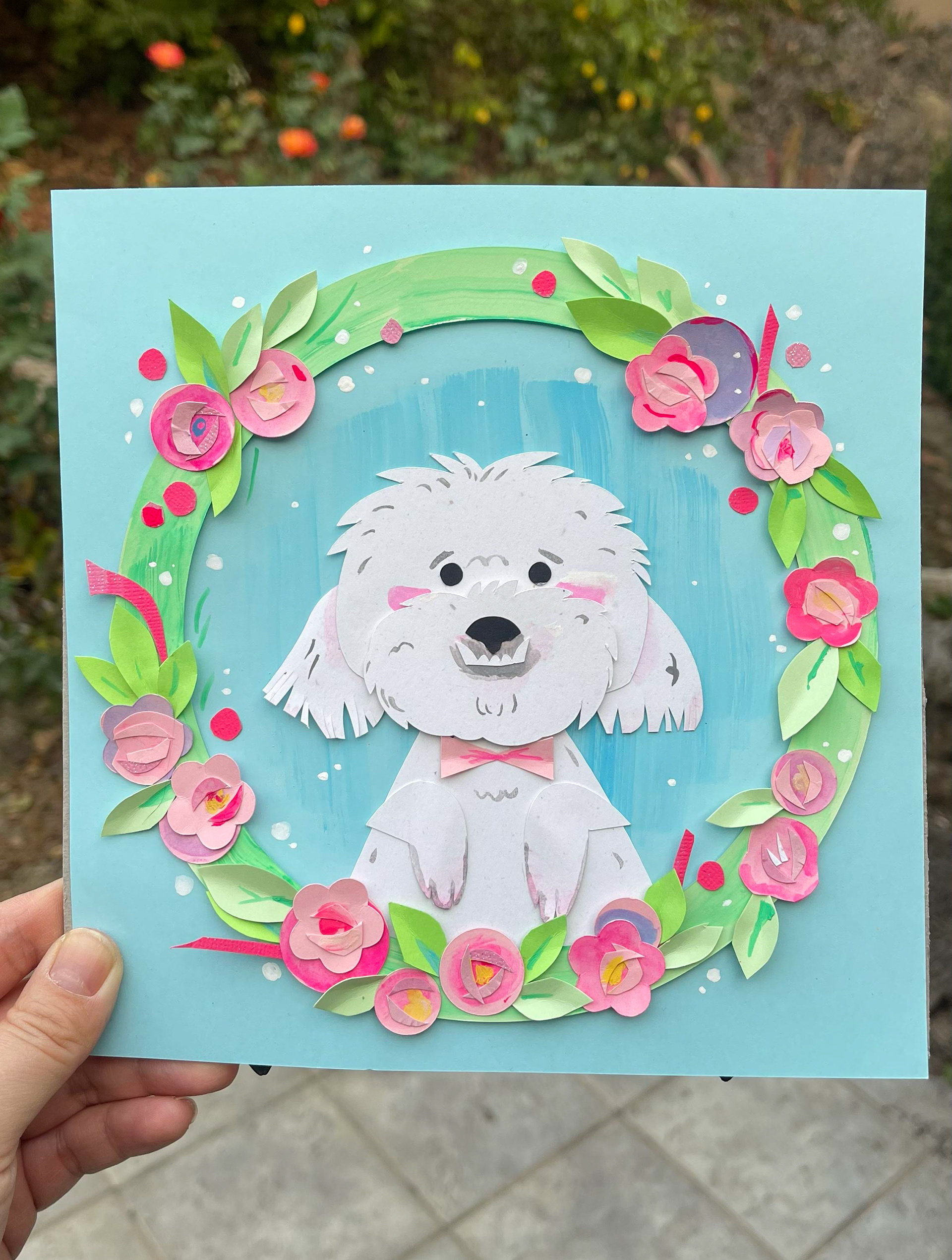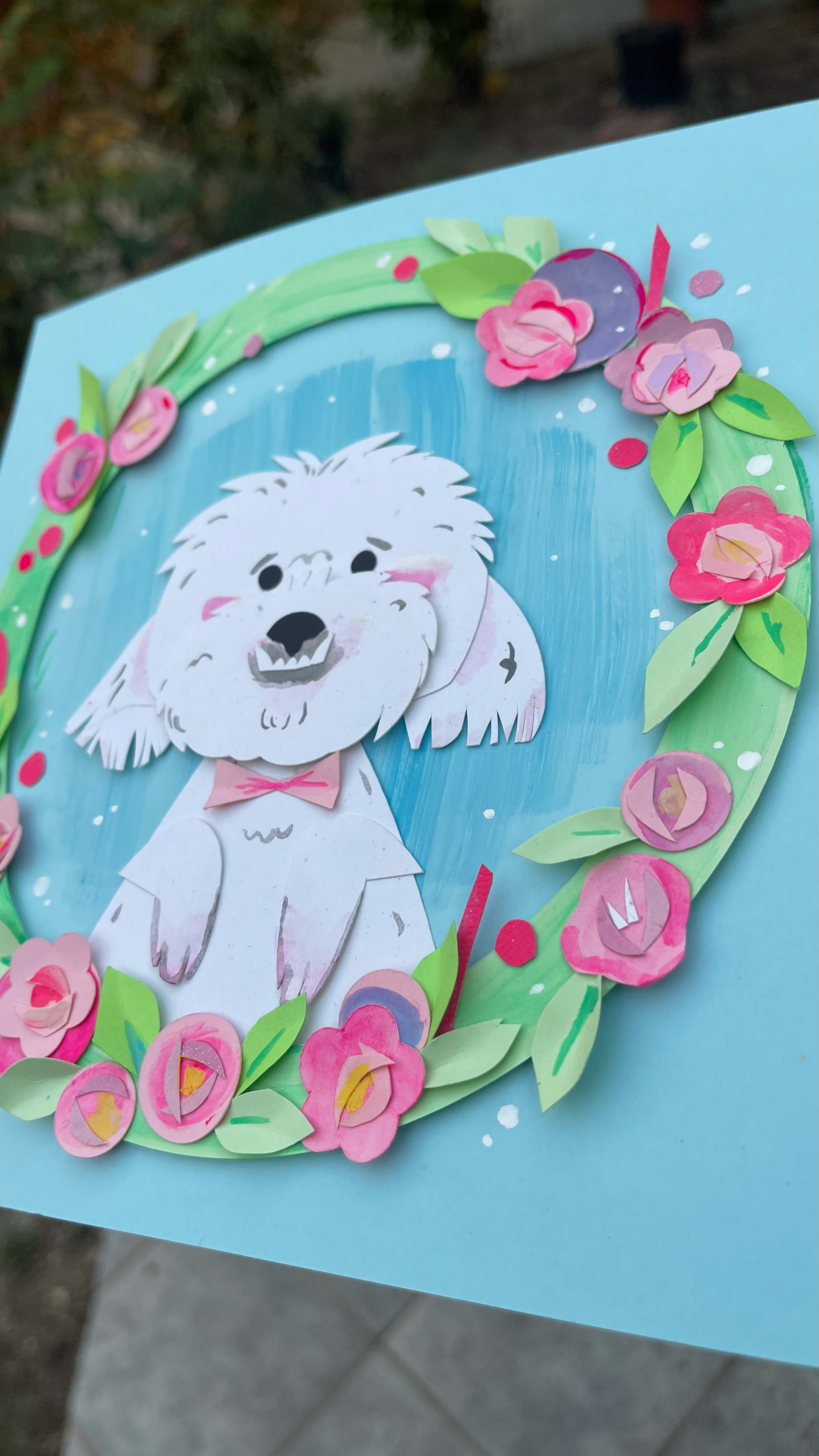 Handmade, 3D paper art made as a tribute for my friend's beloved dog, Pawla.