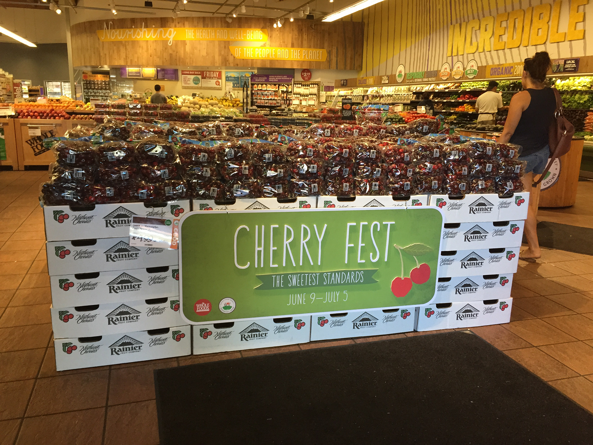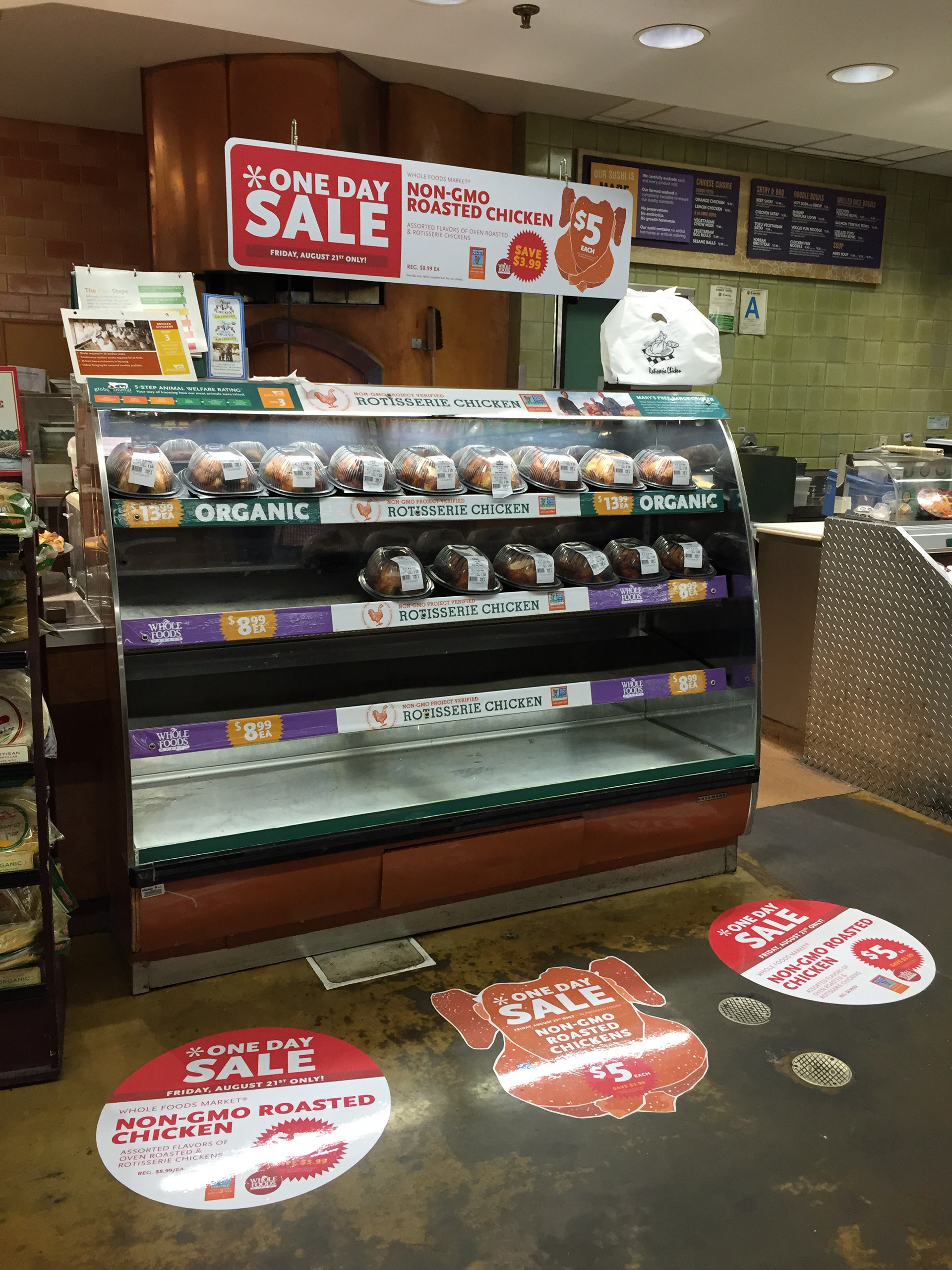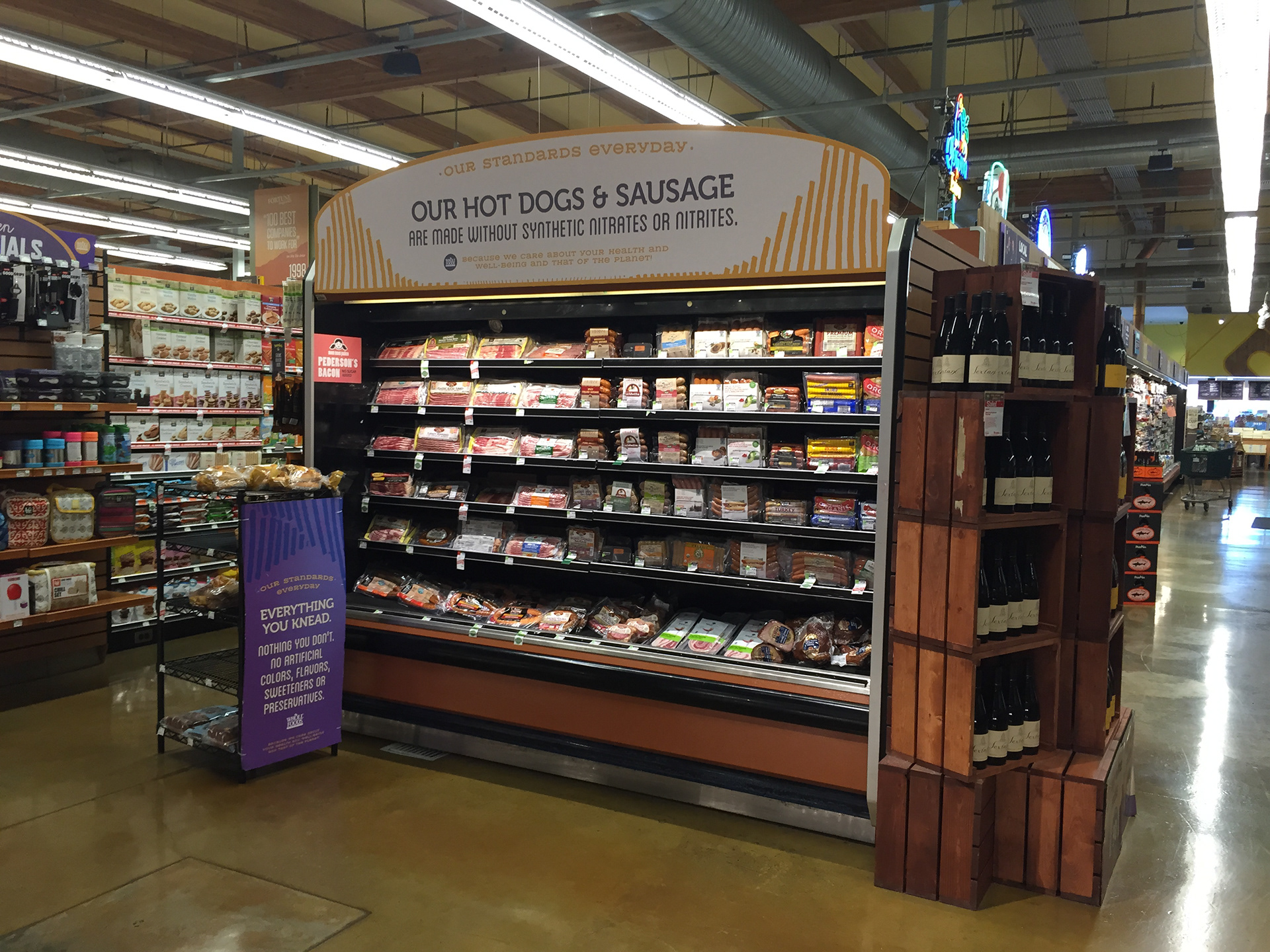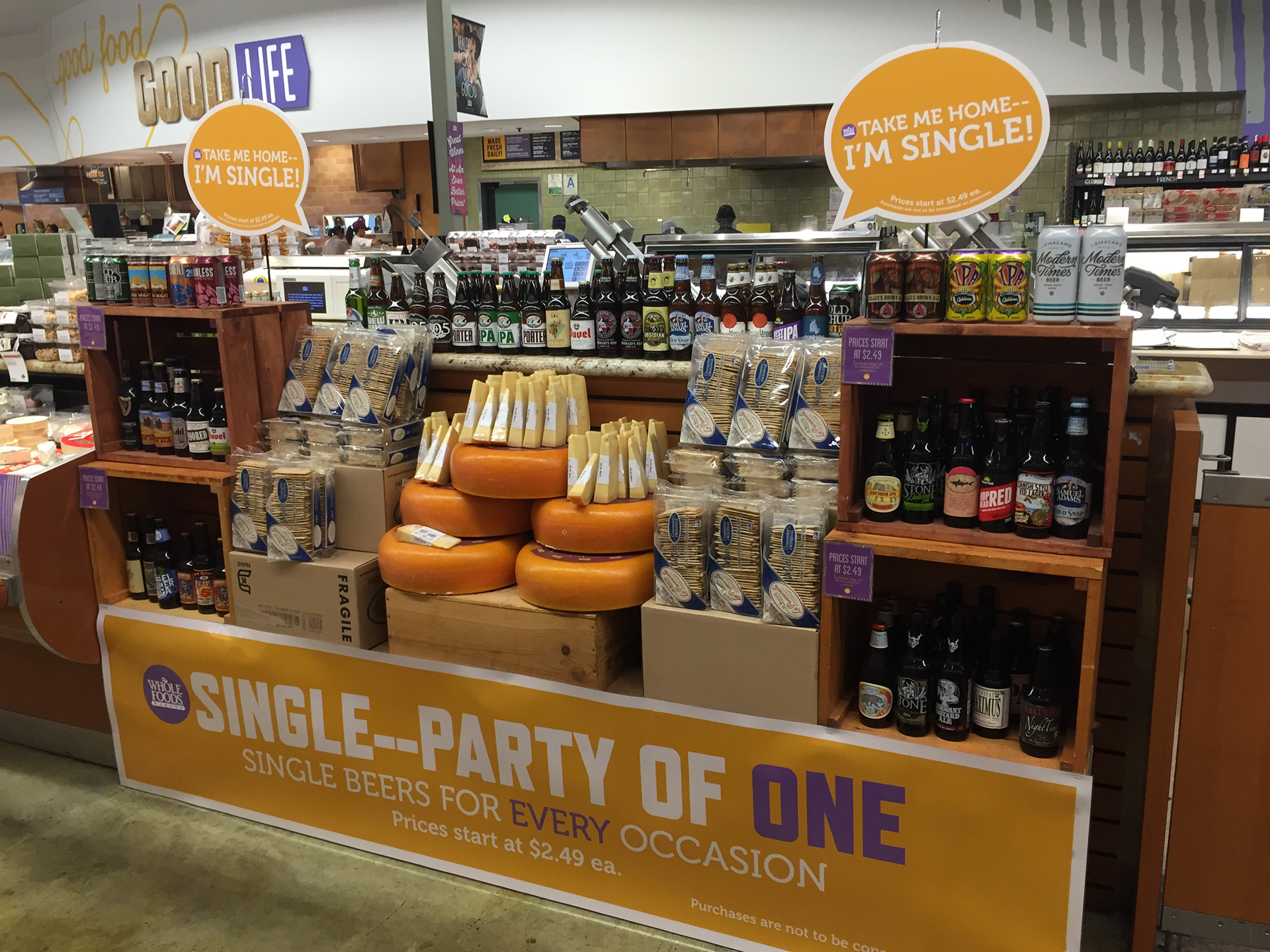 In-store signage and visual merchandising for Whole Foods Market Valencia.