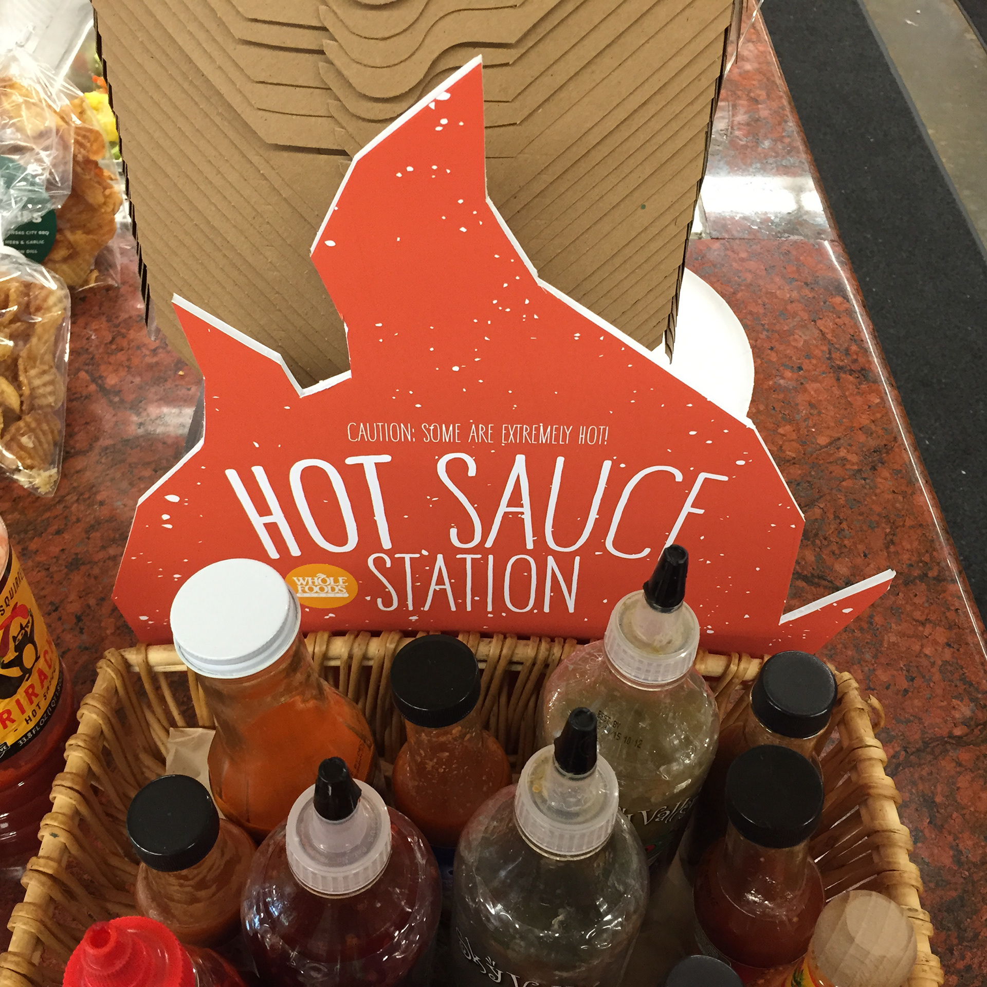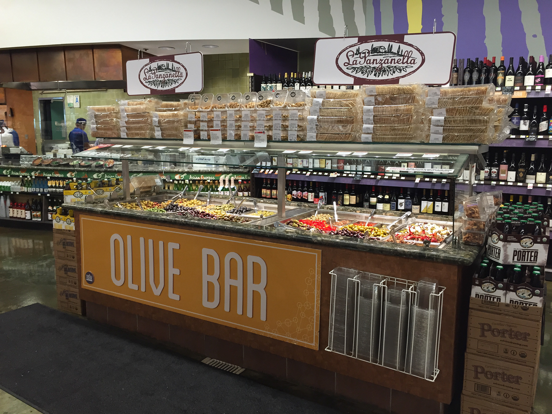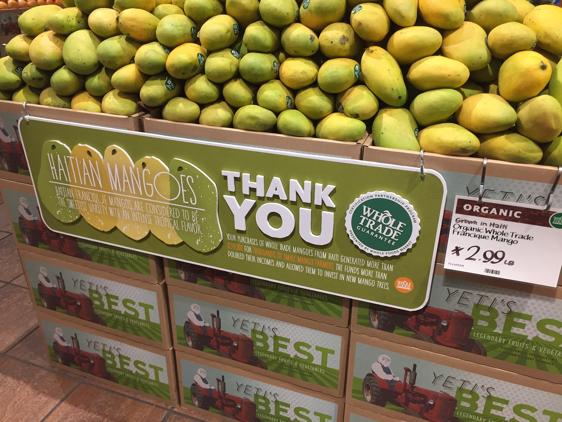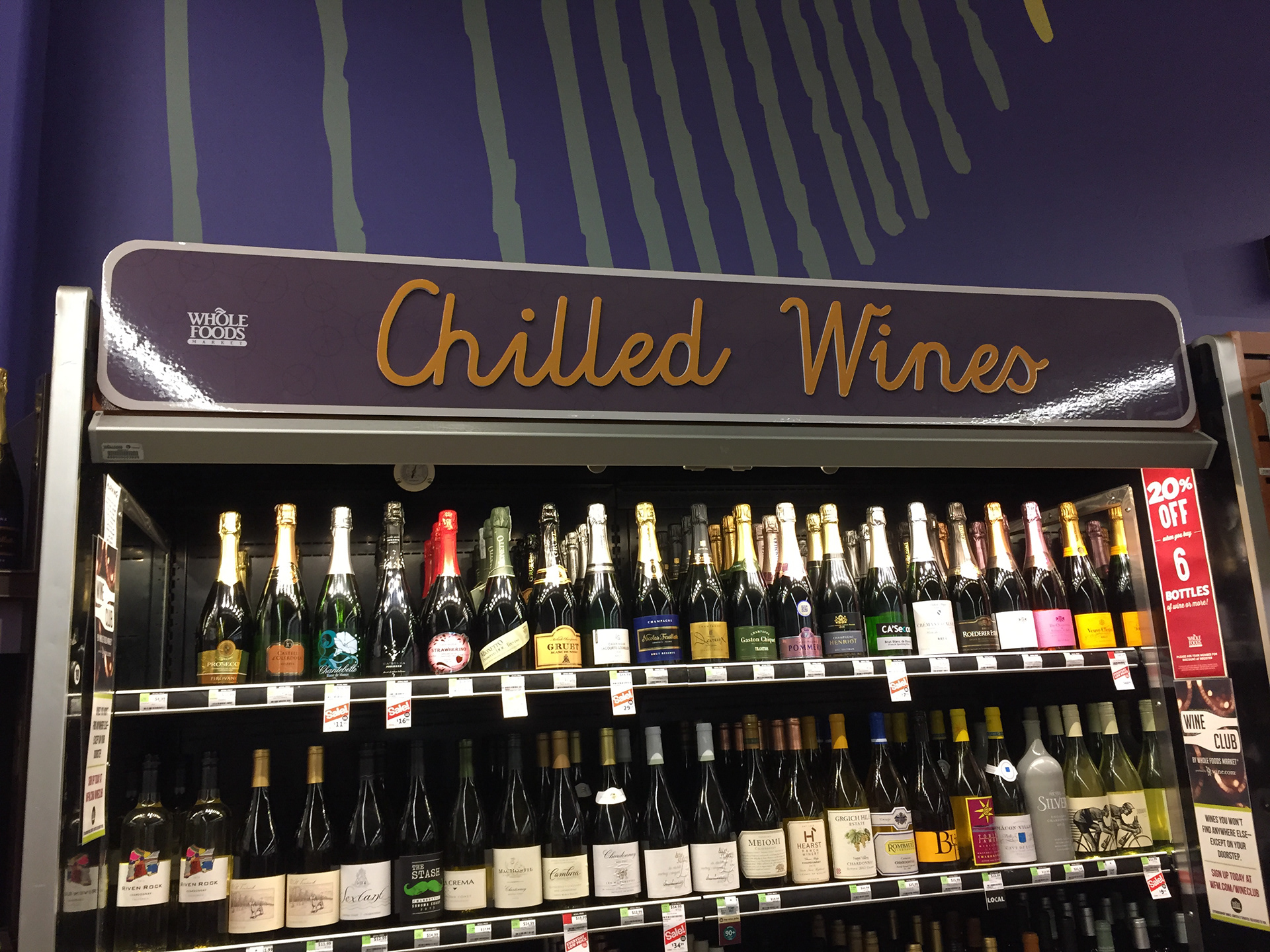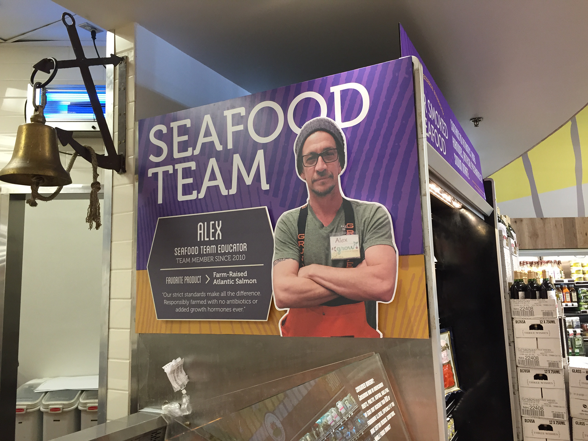 In-store signage and visual merchandising for Whole Foods Market Valencia.