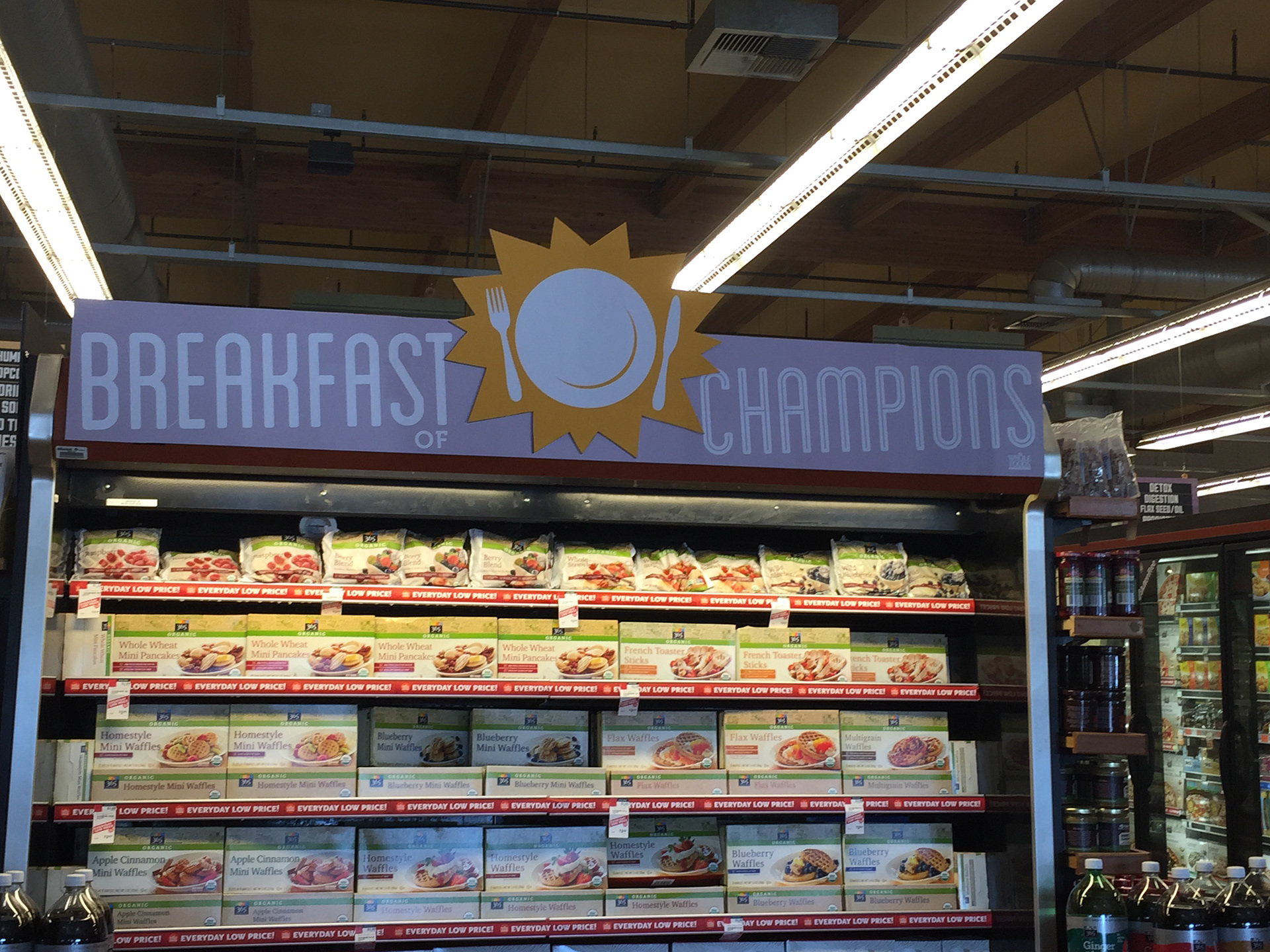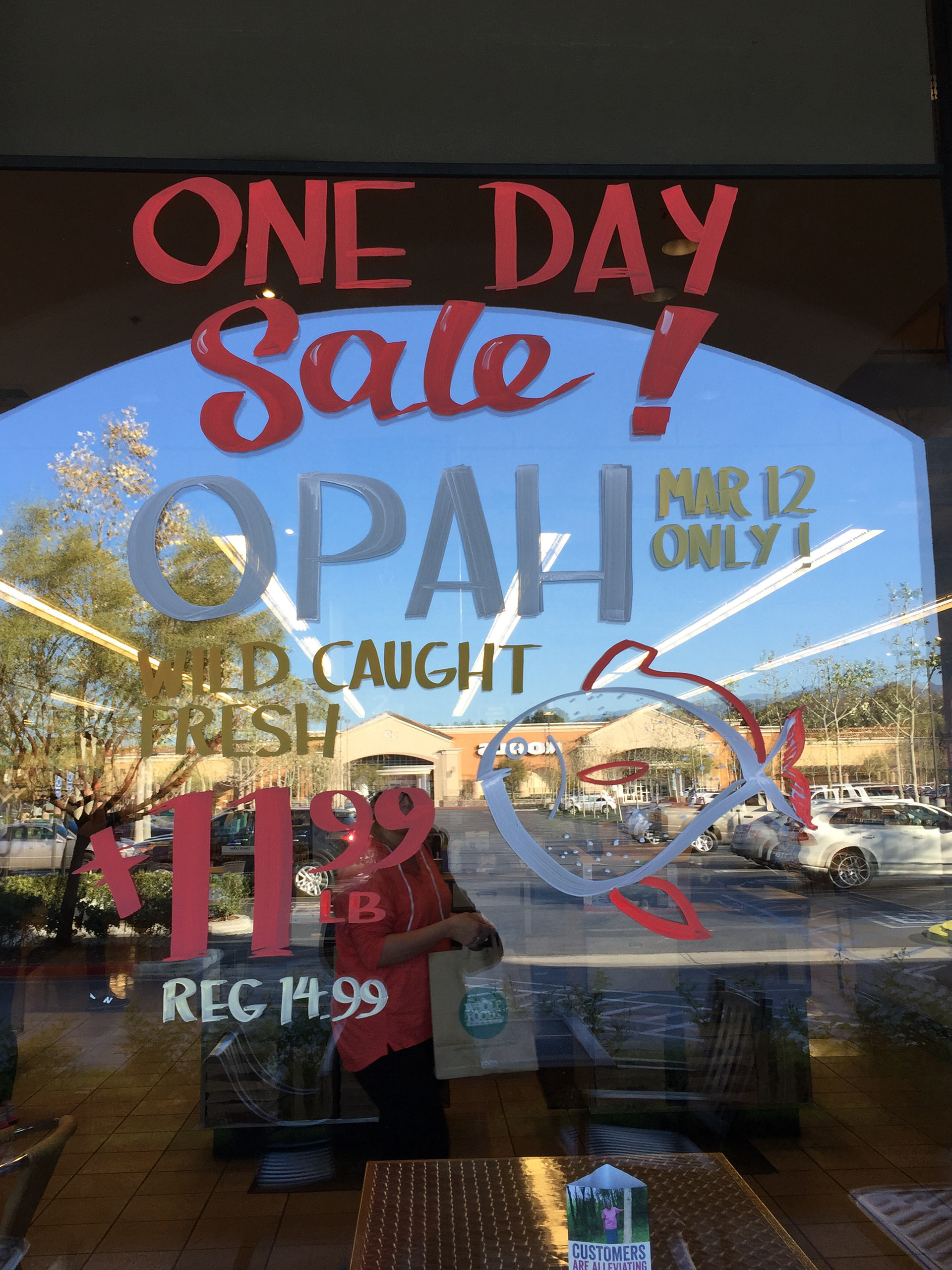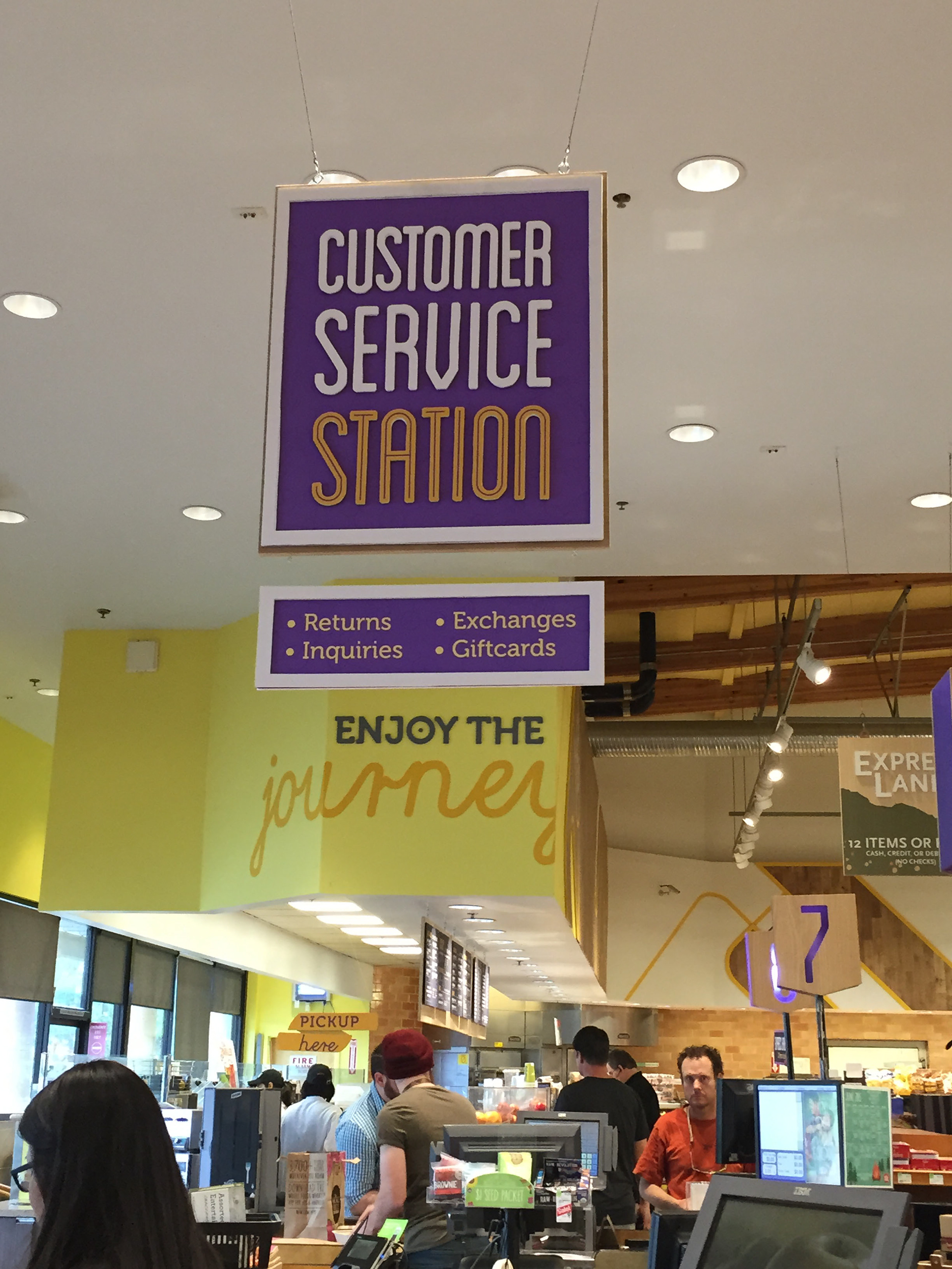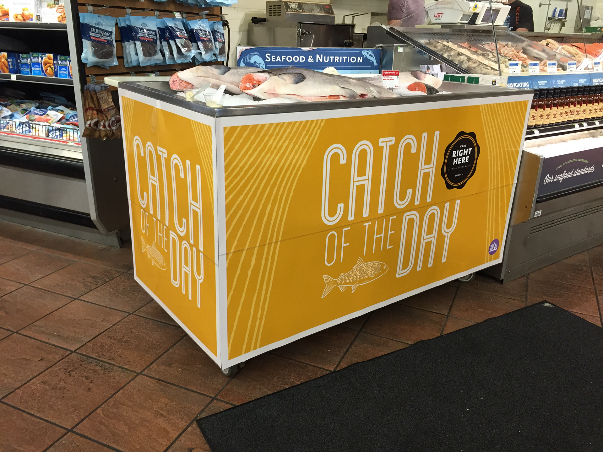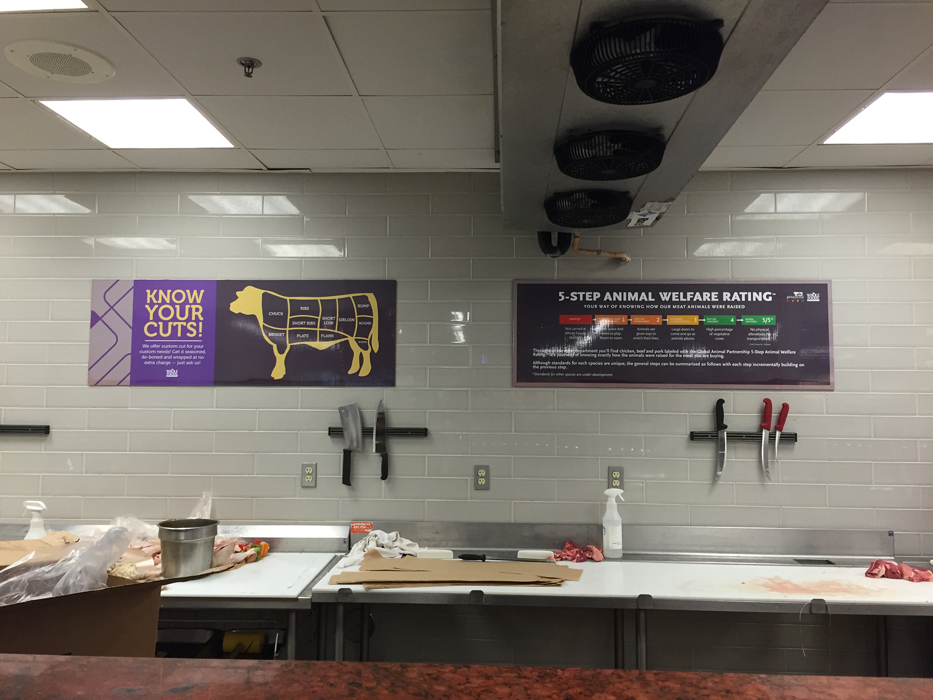In-store signage and visual merchandising for Whole Foods Market Valencia.